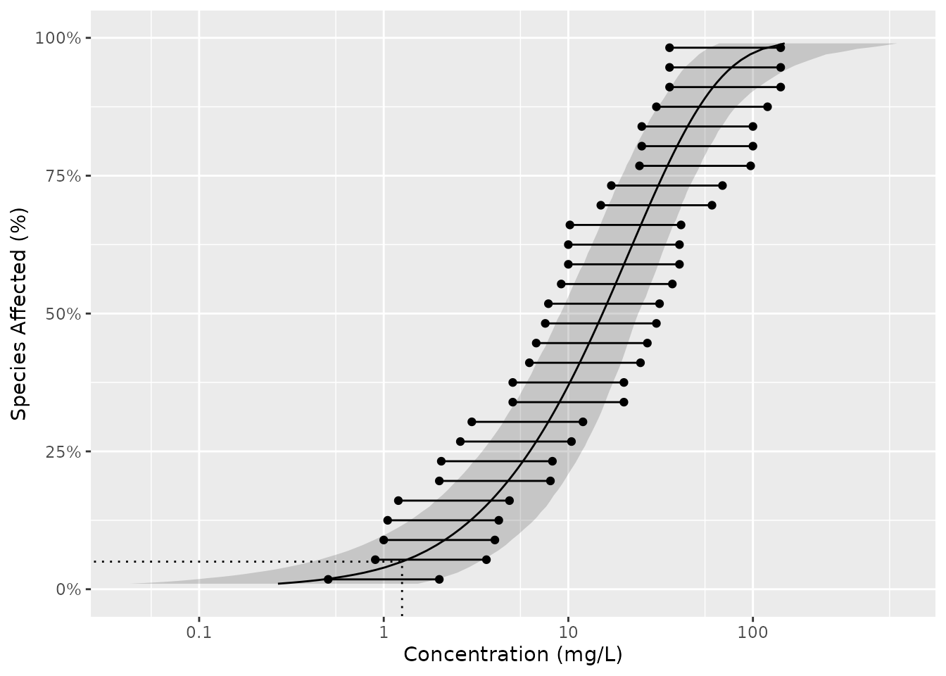 print(gp + geom_hcintersect(xintercept = boron_hc5$est, yintercept = 5 / 100))